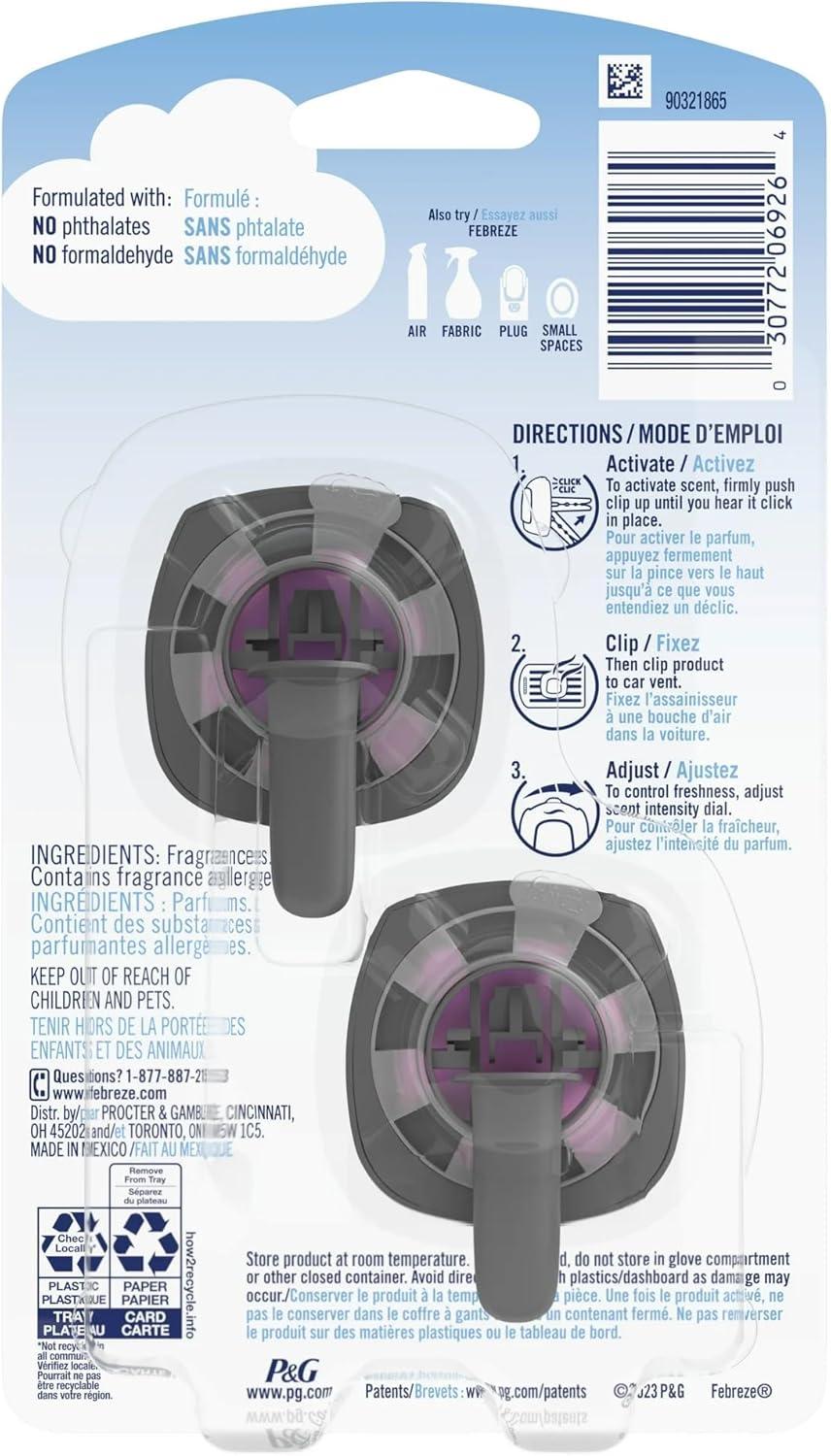 Kick car odors to the curb and enjoy up to 40 days of consistent scent with Febreze AUTO. While other car refreshers start off like a floral punch in the face, Febreze smells just right, right away. You’ll get that first-day Febreze fresh for up to 40 days courtesy of its patented Steady Release Technology. This car air freshener vent clip is a breeze to install: Just unfold the clip until you hear a click, then clip it to your vent. It uses your car’s fan to circulate an even scent through your entire vehicle. With hints of pear and lily, the sweet just-washed scent of Laundry Fresh will have you floating on a scent-tastic cloud. These tiny car deodorizers are made with odor fighters that fight any car stink with a scent that lasts. So forget those overwhelming, fade-too-soon fresheners and enhance every drive with the long-lasting freshness of Febreze AUTO. Want a fresh that lasts at home, too? Try Febreze Fade Defy PLUG.