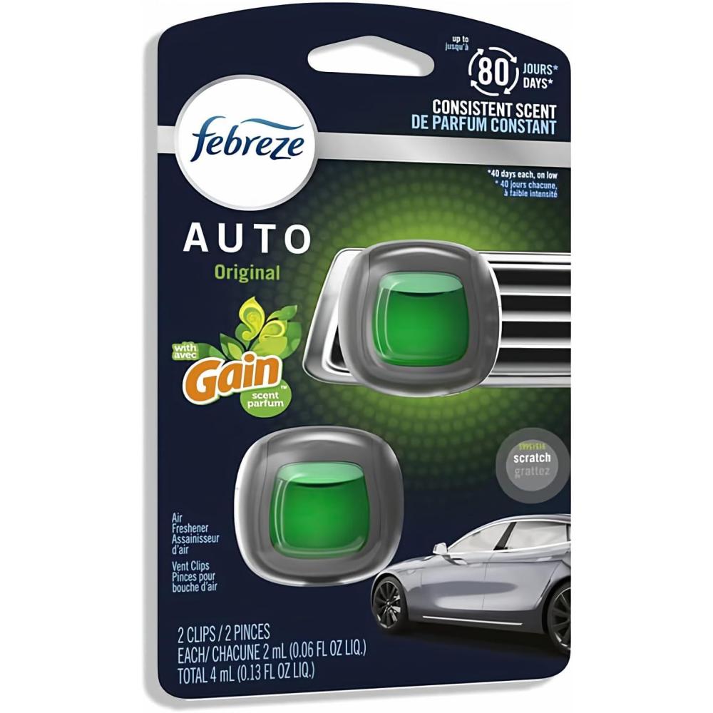 Febreze Car Air Freshener Vent Clip Laundry Fresh Scent, .07 oz. Car Vent Clip, Pack of 4(Gain)