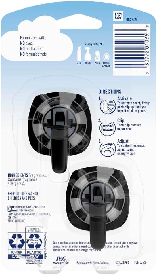 Kick car odors to the curb and enjoy up to 40 days of consistent scent with Febreze AUTO. While other car refreshers start off like a floral punch in the face, Febreze smells just right, right away. You’ll get that first-day Febreze fresh for up to 40 days courtesy of its patented Steady Release Technology. This car air freshener vent clip is a breeze to install: Just unfold the clip until you hear a click, then clip it to your vent. It uses your car’s fan to circulate an even scent through your entire vehicle. With hints of pear and lily, the sweet just-washed scent of Laundry Fresh will have you floating on a scent-tastic cloud. These tiny car deodorizers are made with odor fighters that fight any car stink with a scent that lasts. So forget those overwhelming, fade-too-soon fresheners and enhance every drive with the long-lasting freshness of Febreze AUTO. Want a fresh that lasts at home, too? Try Febreze Fade Defy PLUG.