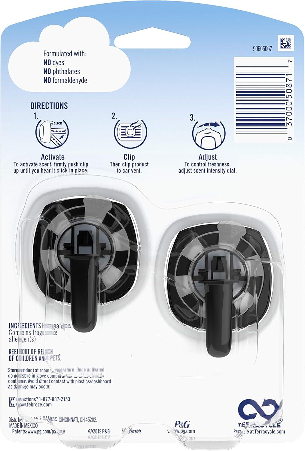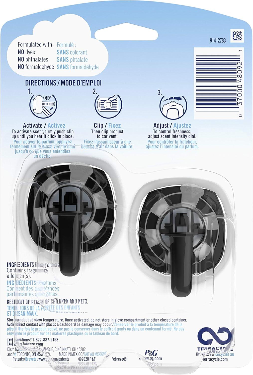 Febreze Car Ocean Scent Air Freshener Vent Clip, .07 oz. Car Vent Clip, Pack of 4(2 Count (Pack of 1))