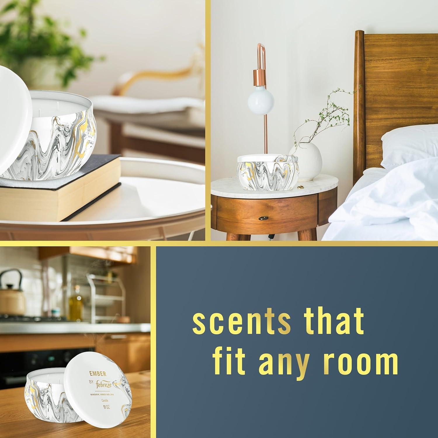 Febreze Scented Candle, Soothe & Restore Scent, 11 oz 4 Wick Candle, Single Pack(Ember)