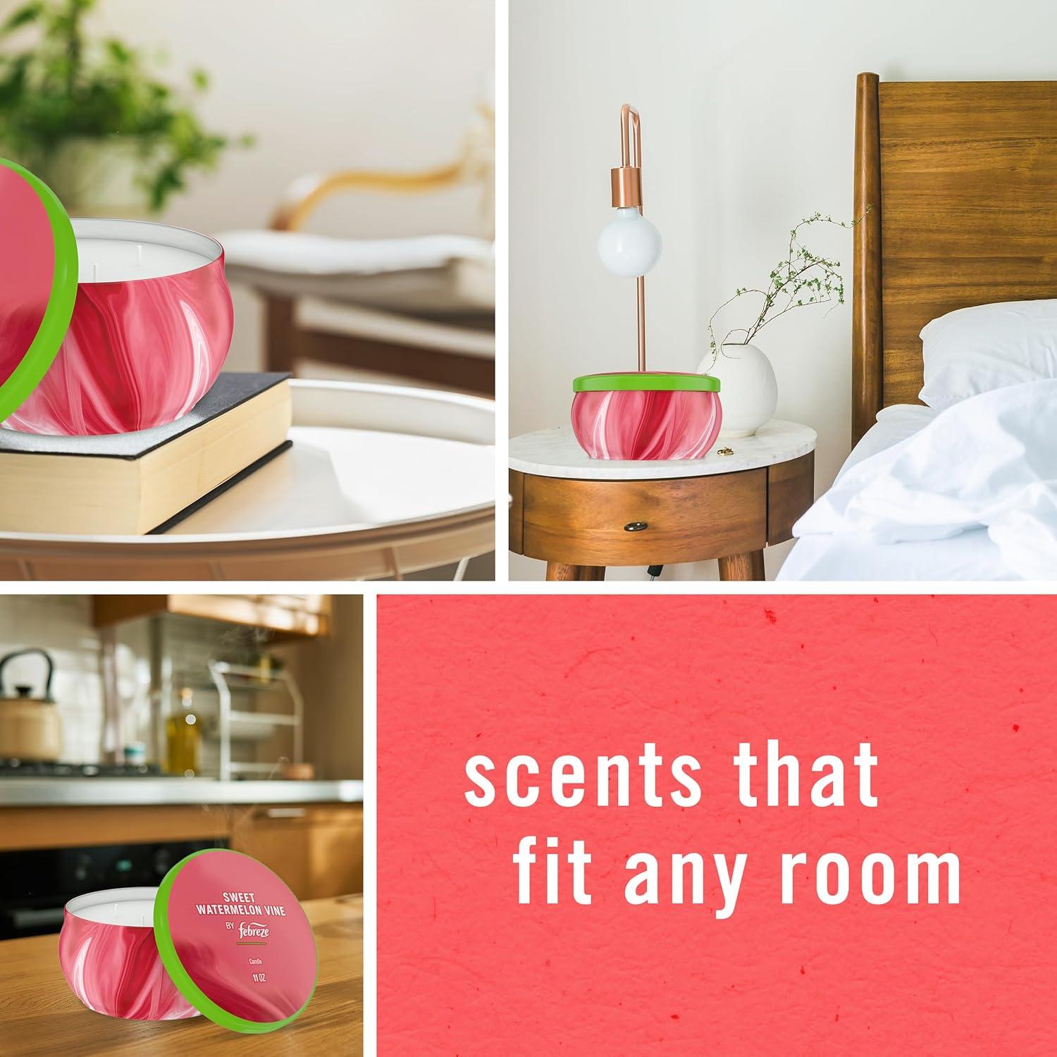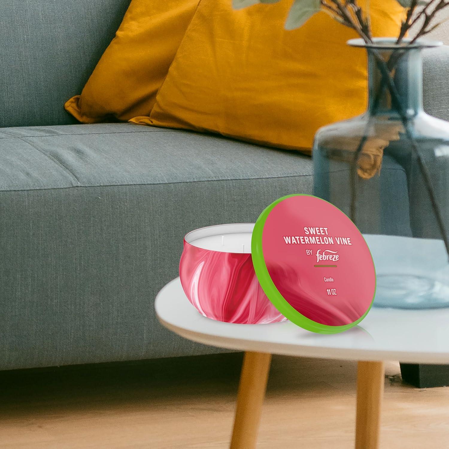 Febreze Scented Candle, Soothe & Restore Scent, 11 oz 4 Wick Candle, Single Pack(Sweet Watermelon Vine)