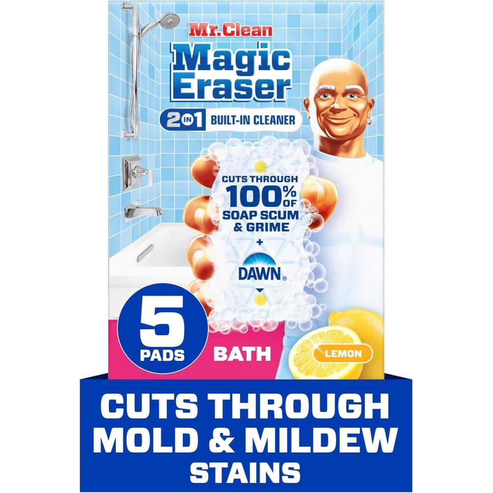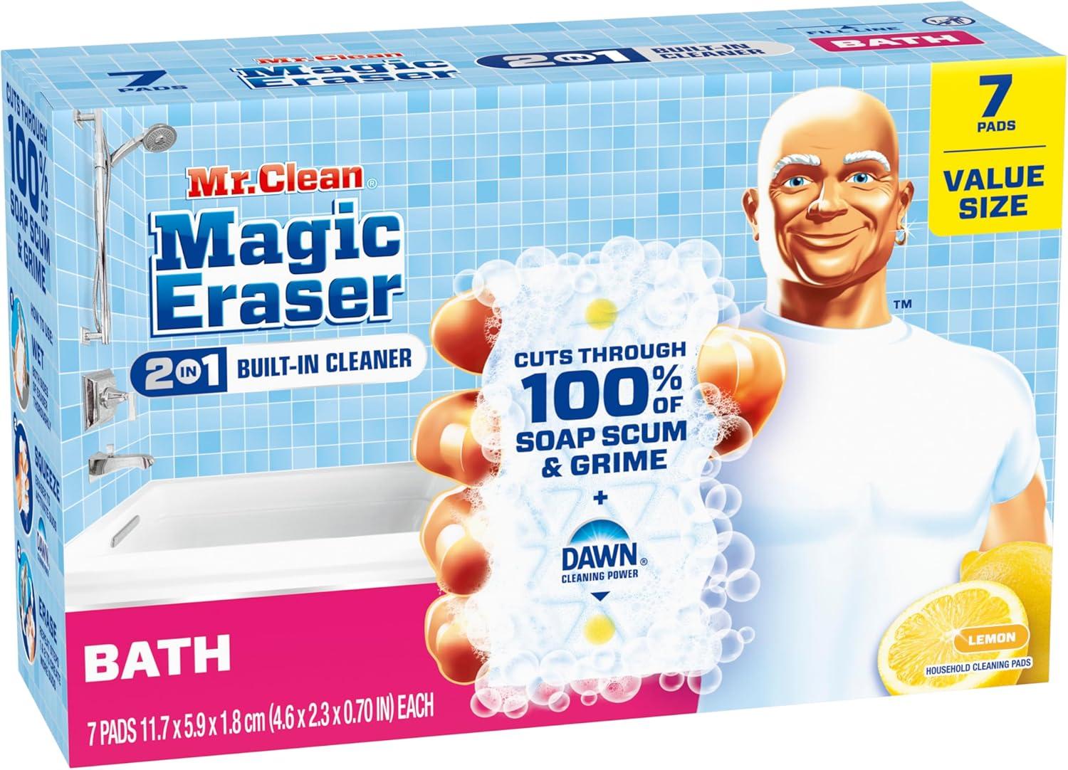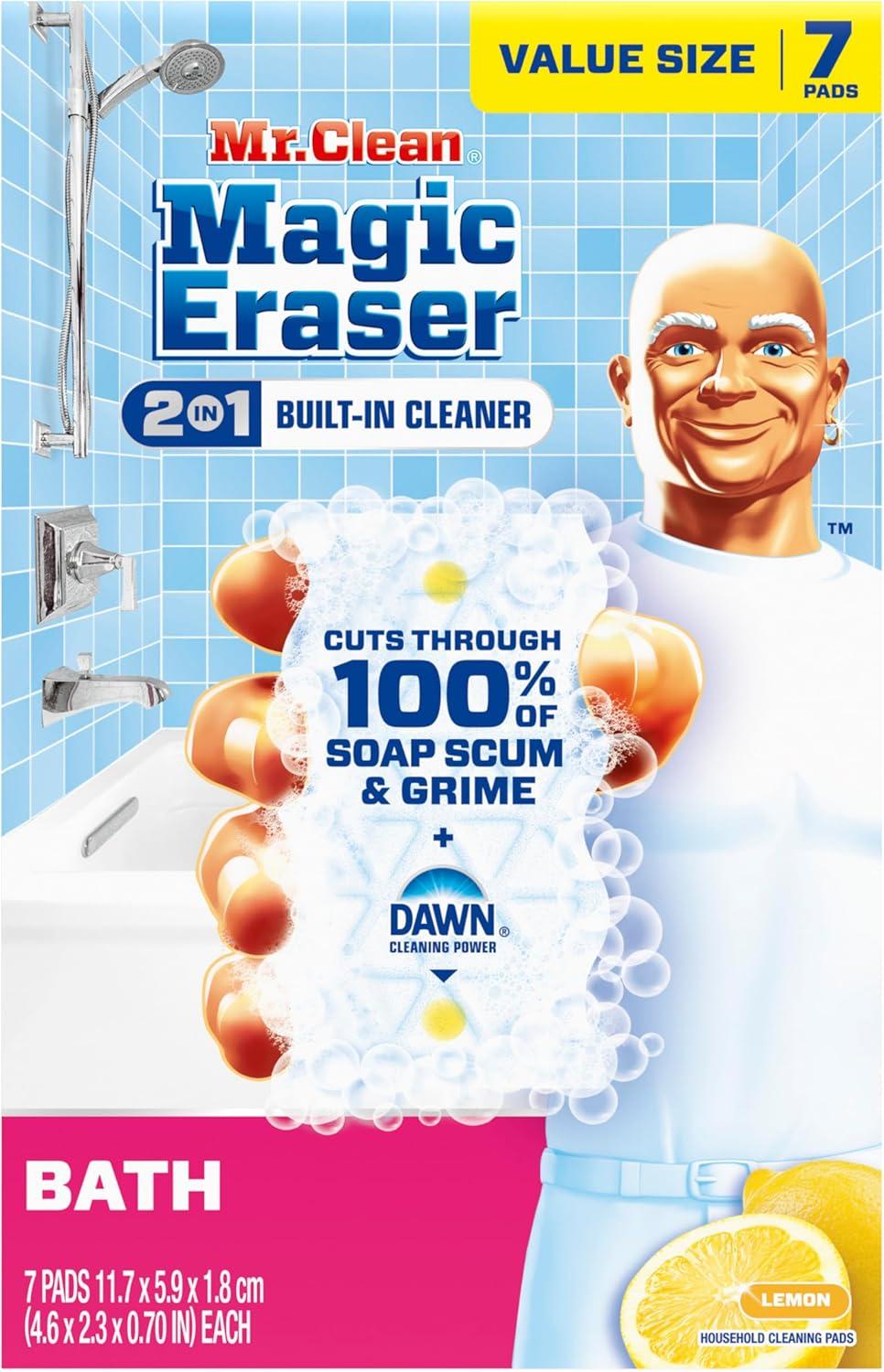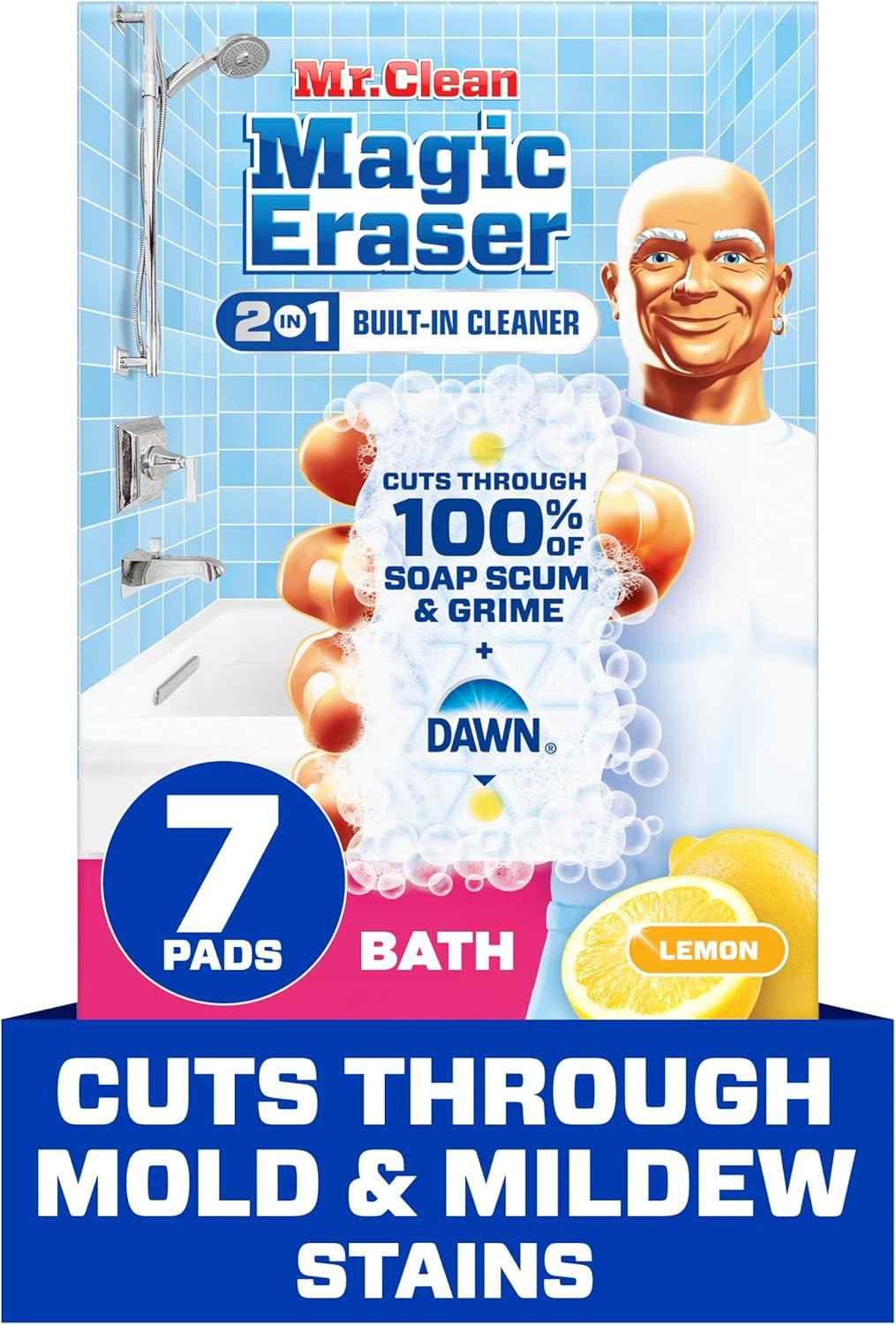 Mr. Clean Magic Eraser Sponge, Bathroom Cleaner, Soap Scum Shower & Tub Cleaner, 2 in 1 Bath, 7ct(Lemon)