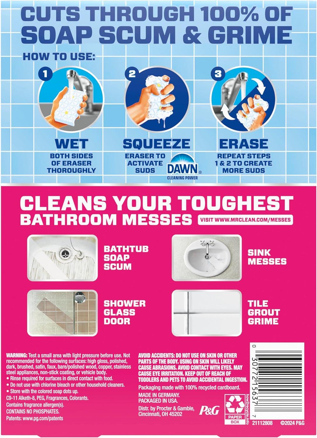 Includes 3 Mr. Clean Magic Eraser 2 in 1 Bathroom Cleaning Sponges