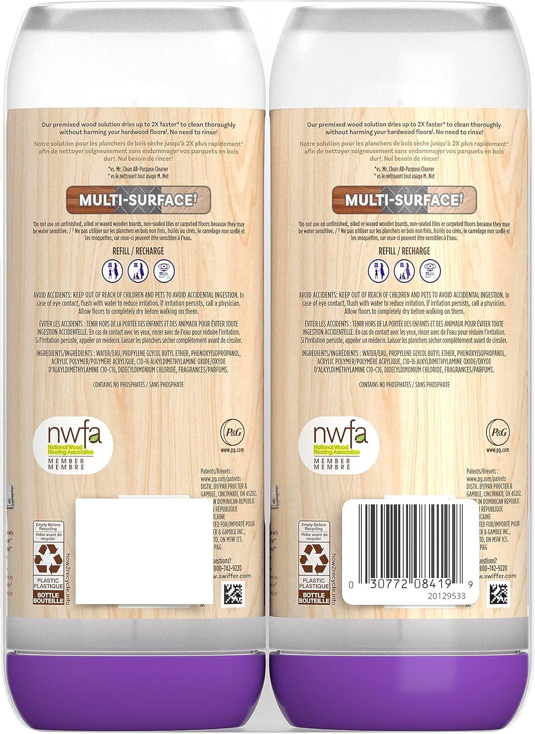 Includes 2 25.3 fl oz bottles of Swiffer PowerMop Wood QuickDry Floor Cleaning Solution, Lemon Scent