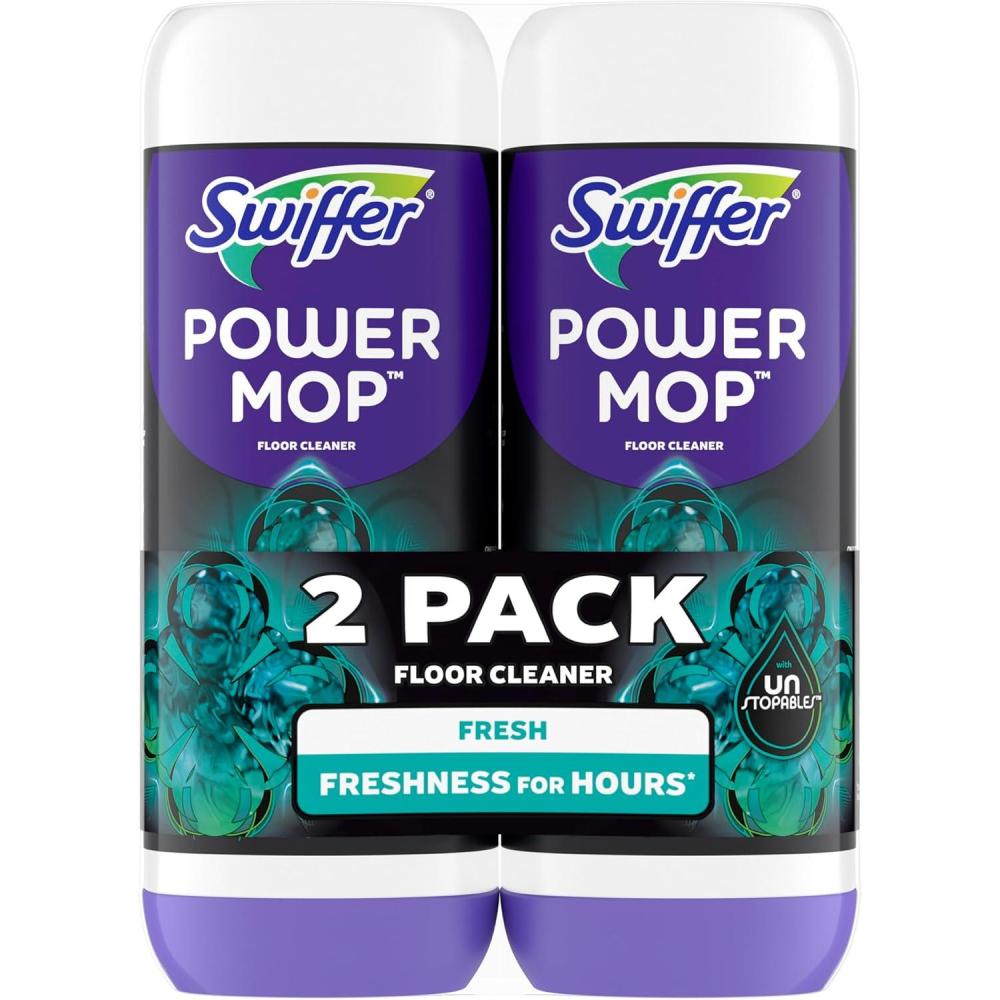 1. SWIFFER POWERMOP REFILLS: This pack includes 2 25.3 fl oz bottles of Swiffer PowerMop Floor Cleaning Solution, Unstopables Fresh Scent, perfect for use with Swiffer PowerMop pads